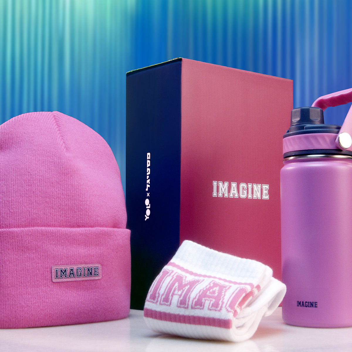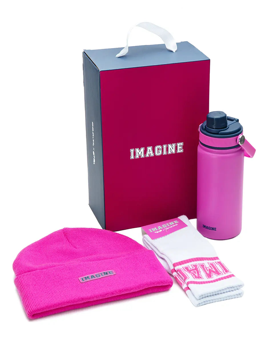 קמפוס אימג'ן אתכם גם בבית! קמפוס קיט ורוד כולל בקבוק, כובע צמר וגרביים